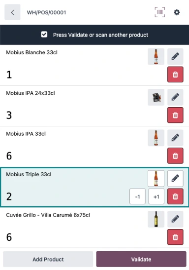 Recevez, stockez et livrez plus rapidement avec l’application Code-barres d'Odoo. Achetez des palettes et vendez à la bouteille ; nous gérons tous les conditionnements pour vous.