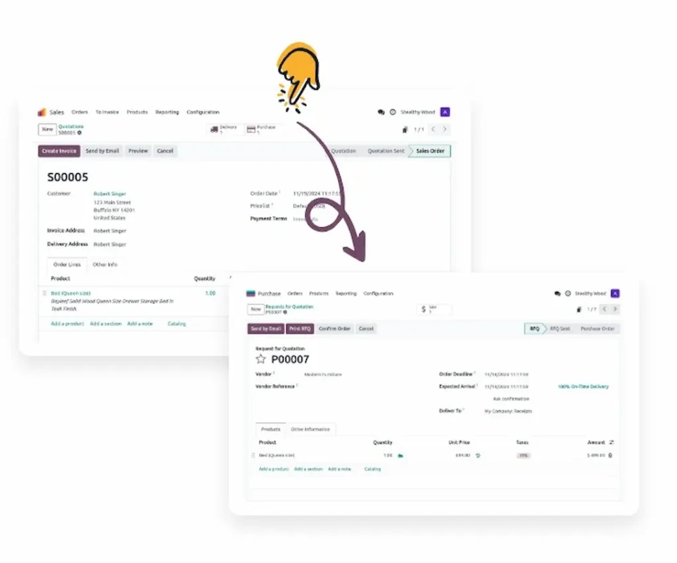 L’approvisionnement intelligent génère automatiquement des bons de commande en fonction des ventes de produits personnalisés.